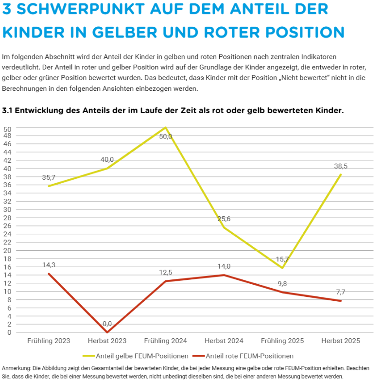 Pädagog:innen, Gruppen- und Trägerebenen erhalten so einen schnellen, datenbasierten Überblick über Entwicklungsstände. Dieser kann als Grundlage für weitere Maßnahmen und ihre Wirkungen genutzt werden.